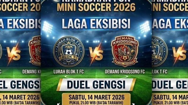 RADAR ASTACITA – BLORA, Stadion Kridosono dipastikan bakal “meledak” pada Sabtu malam, 14 Maret 2026 mendatang. Sebelum partai puncak Final Ramadhan Fun Mini Soccer 2026 dimulai, publik akan disuguhi duel penuh gengsi bertajuk Laga Eksibisi antara Demang Kridosono FC melawan Lurah Blok T FC. Daya tarik laga ini bukan hanya pada para pemainnya, melainkan juga […]