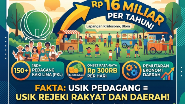 Radar Astacita – Blora, Di tengah upaya pemerintah daerah memacu pertumbuhan ekonomi pascapandemi dan ketidakpastian global, sebuah fakta mencengangkan muncul dari jantung Kota Blora. Lapangan Kridosono, yang selama ini mungkin dianggap hanya sebagai ruang publik biasa, ternyata menyimpan kekuatan ekonomi rakyat yang luar biasa: Rp16 Miliar per tahun. Angka ini bukan sekadar klaim di atas kertas, […]