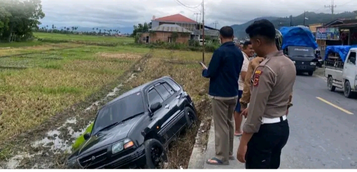RADAR ASTACITA – SUNGAI PENUH, Sebuah insiden kecelakaan lalu lintas tunggal terjadi di Desa Sungai Liuk, Kecamatan Pesisir Bukit, Kota Sungai Penuh, pada Senin sore sekitar pukul 16.30 WIB. Sebuah mobil Suzuki Escudo berwarna hitam hilang kendali dan terperosok ke area persawahan warga.