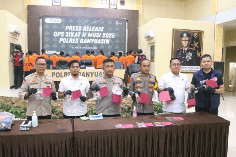 RADAR ASTACITA – BANYUASIN, Kepolisian Resor (Polres) Banyuasin berhasil mengungkap puluhan kasus kejahatan dalam gelaran Operasi Sikat II Musi 2025. Operasi yang berlangsung selama 15 hari, dari 30 Oktober hingga 13 November 2025, ini sukses menjaring puluhan tersangka dari berbagai tindak kriminalitas.